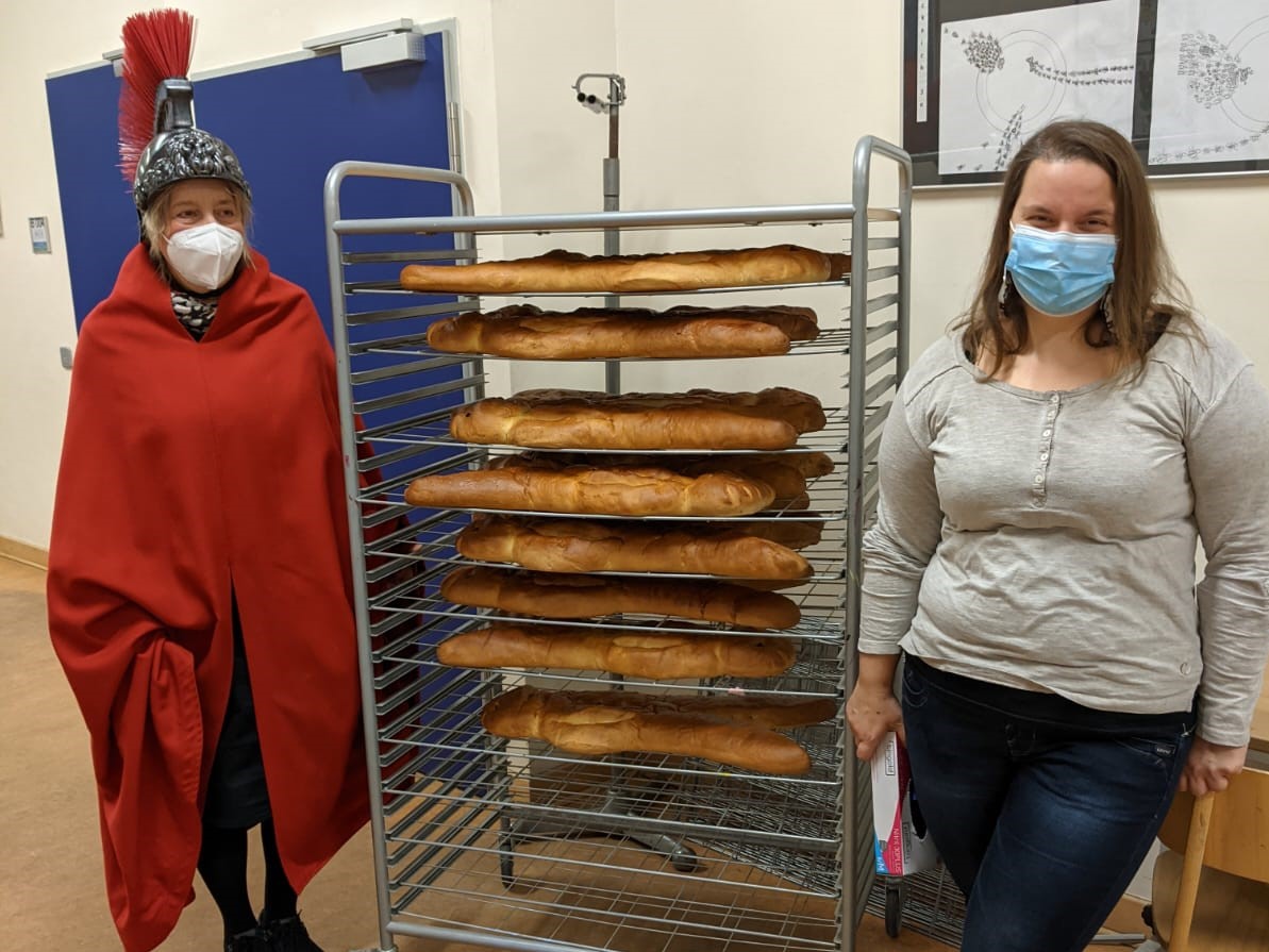 In diesem Jahr haben wir in den Klassen gemeinsam das Martinsfest gefeiert. Dabei wurde natürlich auch die Geschichte des heiligen Martin in Erinnerung gerufen. Als Aktion im Gedenken an St. Martin haben wir gemeinsam in den Klassen einen großen Weckmann geteilt und gemeinsam gefrühstückt.