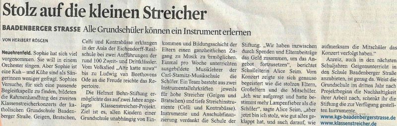 Ab dem Schuljahr 2013/14 nimmt unsere Schule am Projekt der Klassenstreicher teil, welches von der Helmut-Behn-Stiftung unterstützt wird.